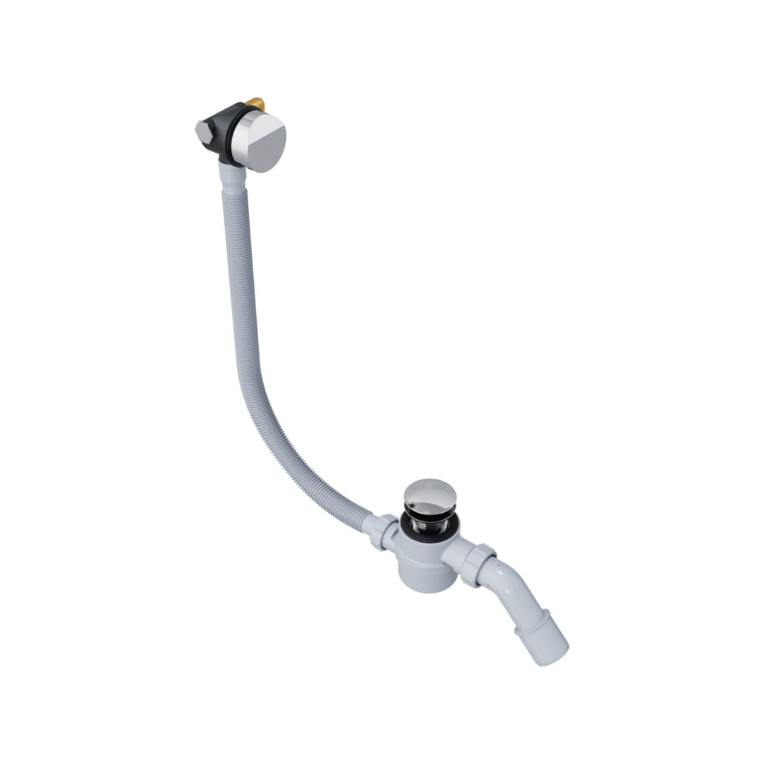 Hover syfon wannowy chrom z napełnianiem i czyszczony od góry .Kompleksowa oferta syfonów wannowych, zintegrowanych z korkami Click-Clack, to najlepsze uzupełnienie każdej wanny. Linia produktów Hover, oprócz oryginalnego i świetnie komponującego się z każdą łazienką designu, wyposażona jest w wiele dodatkowych funkcji, znacząco ułatwiających codzienne korzystanie z kąpieli. - Napełnianie przez przelew specjalnie zaprojektowana rozeta pozwala na efektywne napełnianie wanny z wykorzystaniem perlatora - Czyszczenie od góry - specjalny koszyczek dołączony do korka umożliwia systematyczne czyszczenie, co może zabezpieczyć przed zatykaniem syfonu - Zabudowany mechanizm Click-Clack zapewnia ciche oraz bezproblemowe działanie korka - Uniwersalność - rura odpływowa typu Flex pozwala na dopasowanie długości odpływu do każdej wanny - Jakość - produkty zostały wykonane z wysokiej jakości mosiądzu co gwarantuje niezawodność produktów na lata - Wersja kolorystyczne - syfony wannowe Moli dostępne są w 6 kolorach: chrom, czarny mat, biały mat, złoty połysk, złoty szczotkowany, miedź szczotkowana.