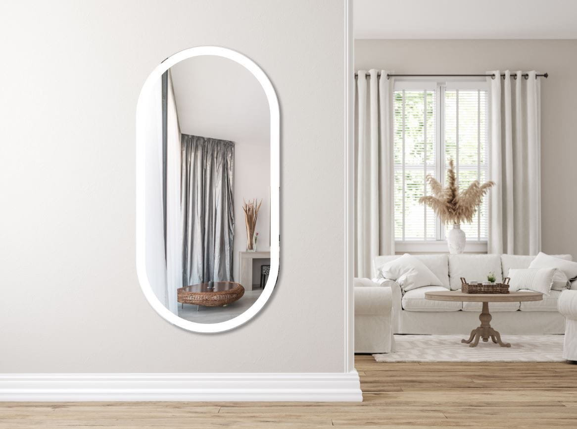 Lustro Kalisto 60x120 cm. posiada owalną, pociągłą sylwetkę. Możliwość montażu pionowego lub poziomego na uchwytach daje szerokie możliwości aranżacyjne, niezależnie od wielkości wolnej przestrzeni. Lustro wiszące pozwoli stworzyć harmonijny projekt łazienki utrzymanej w minimalistycznym, skandynawskim lub nowoczesnym stylu. Jeśli poszukujesz modelu, który rozjaśni, powiększy i upiększy Twoje wnętrze, ten produkt będzie odpowiedni.